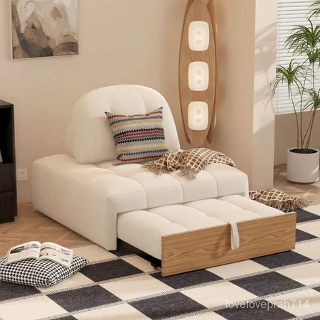 [PROMOÇÃO RELÂMPAGO] Sofá de Tecido Telescópico Creme Bolha Estilo Japonês
