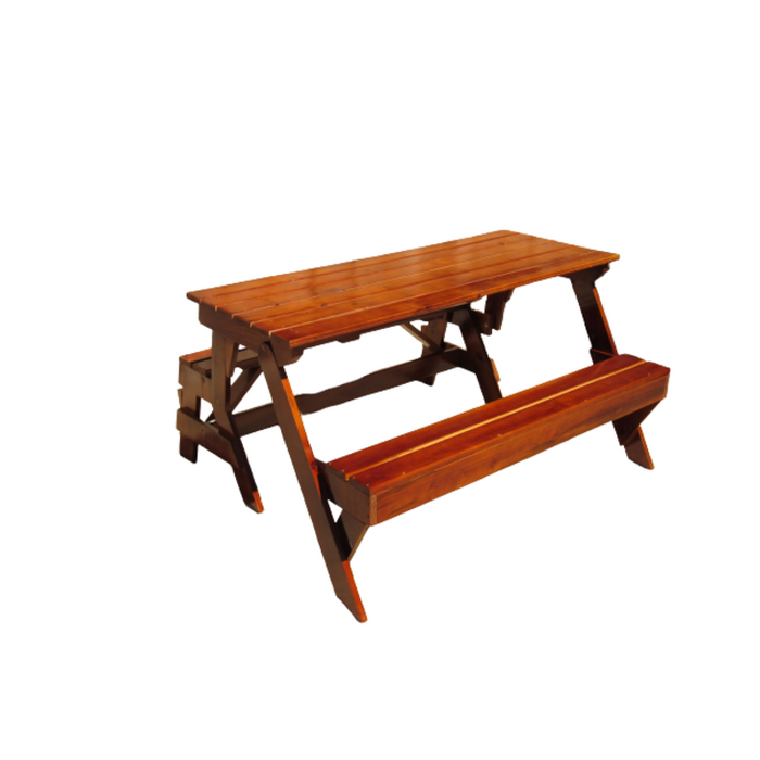 Banco que Vira Mesa 1,5 Metros em Madeira Maciça com Verniz Imbuia