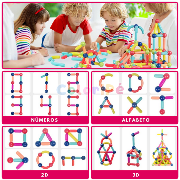 Com peças magnéticas que se conectam facilmente, ele permite montar inúmeras estruturas tridimensionais (3D) como torres, casinhas, pontes, animais e tudo o que a imaginação permitir — sem telas e com muito estímulo positivo.