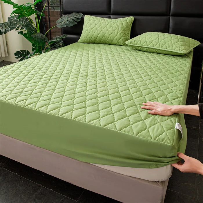 Ela possui ajuste elástico que se adapta a diferentes tamanhos e alturas de colchão, garantindo um encaixe perfeito e seguro.
