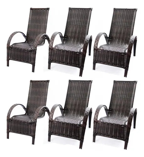 Kit 6 Cadeira Poltrona Jardim Confortável Junco Sintético