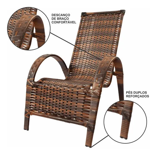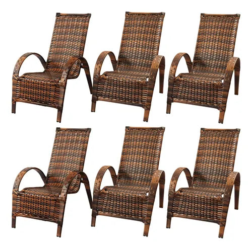 Transforme seu espaço externo com o Kit 6 Cadeiras Poltrona Jardim Confortável Junco Sintético da marca Word Fishing & Móveis. Ideal para varandas, quintais e áreas de recepção, este conjunto combina conforto e estilo, permitindo que você desfrute de momentos relaxantes ao ar livre. Com um design que respeita a ergonomia, cada cadeira possui apoio de braços, proporcionando um suporte adicional para o seu descanso.