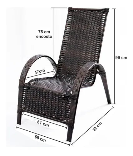 Com uma altura total de 99 cm, essas poltronas são perfeitas para qualquer ocasião, seja um encontro com amigos ou um momento de tranquilidade. O design em junco sintético traz um toque de sofisticação, tornando-as uma escolha elegante para a sua decoração externa. Aproveite a versatilidade e o conforto que este conjunto oferece e transforme seu jardim em um verdadeiro refúgio.