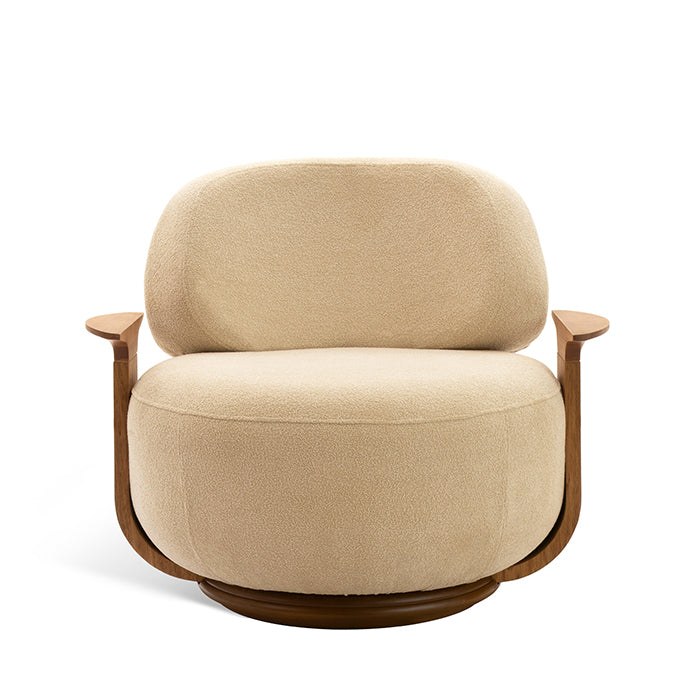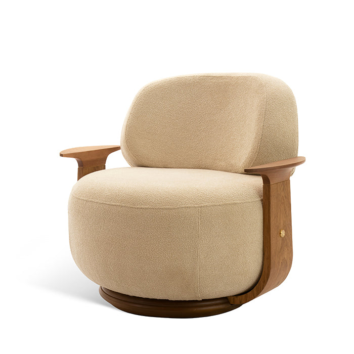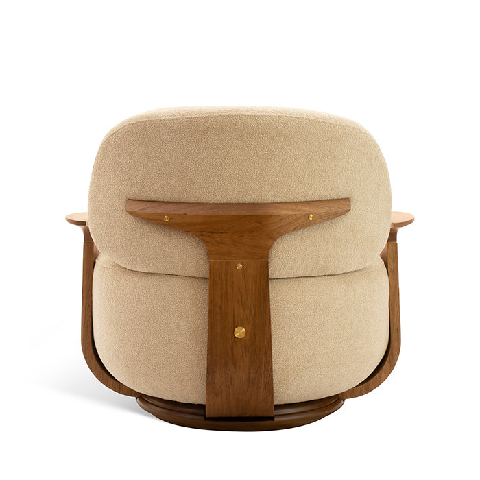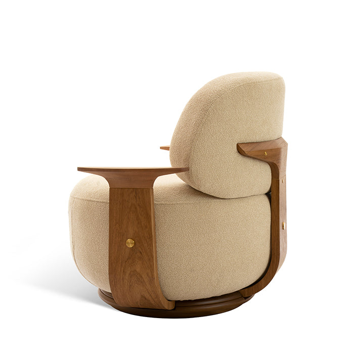 A delicadeza da madeira se une com o estofado robusto, criando uma peça confortável para múltiplos ambientes.