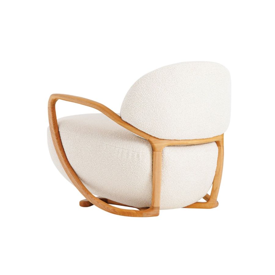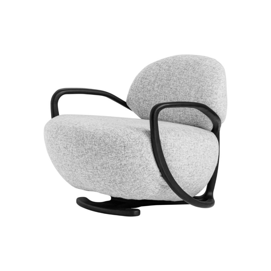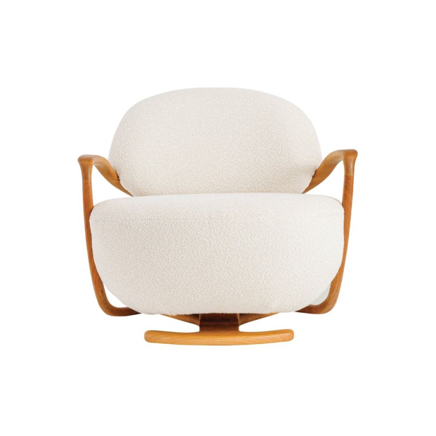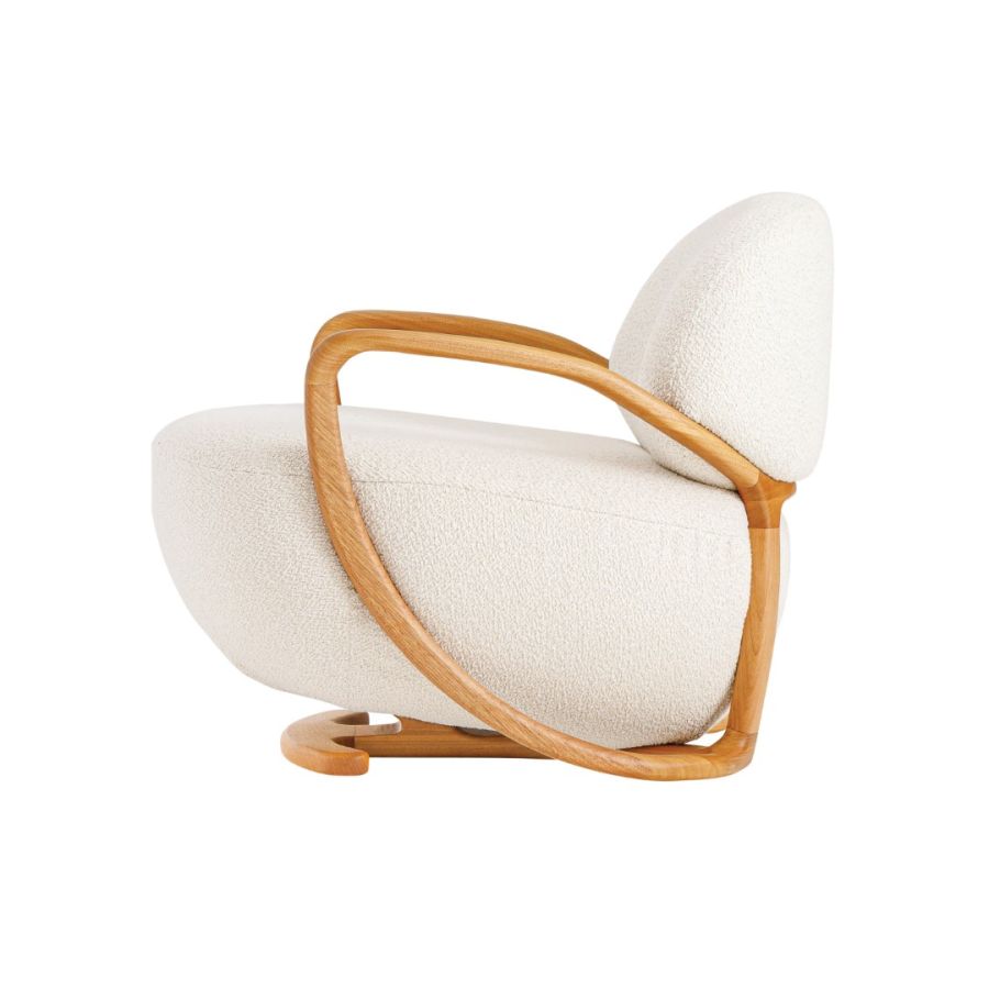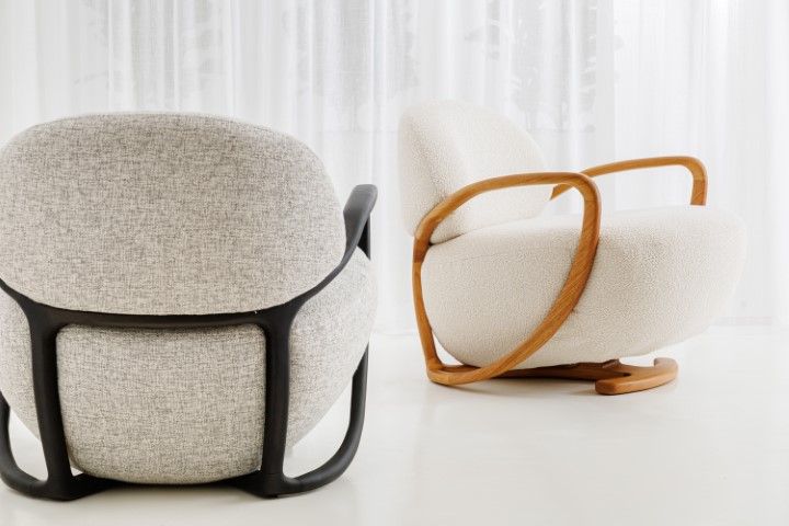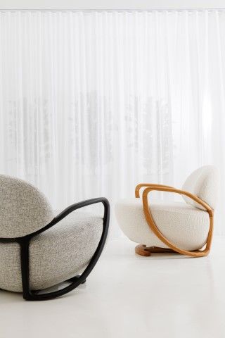 Poltrona Zaha - Empório. Linhas fluidas que integram planos adjacentes. Curvas infinitas que desfazem as fronteiras entre o fora e o dentro. Organicidade radical, que vai na essência da morfologia das células buscar inspiração para uma nova forma de projetar. São estes os conceitos do trabalho da arquiteta iraquiana Zaha Hadid que servem de inspiração para os traços que se materializam na poltrona Zaha. Criação exclusiva de Daniela Ferro para o Empório das Cadeiras, Zaha é uma peça que surpreende pela fluidez dos braços em madeira, totalmente curvilíneos, que envolvem a estofaria nas costas e na base, criando um exoesqueleto de linhas orgânicas que recebem dentro de si os volumes arredondados de assento e encosto. Extremamente confortável, Zaha nos apresenta um design capaz de conciliar ousadia e elegância, com as melhores qualidades da marcenaria de alto padrão do Empório das Cadeiras.